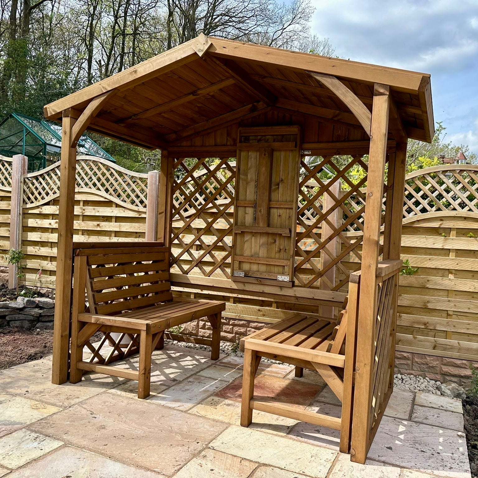 This delightful wooden garden arbour seat has been one of our most popular garden arbours for over 15 years with a few recent upgrades to the design.