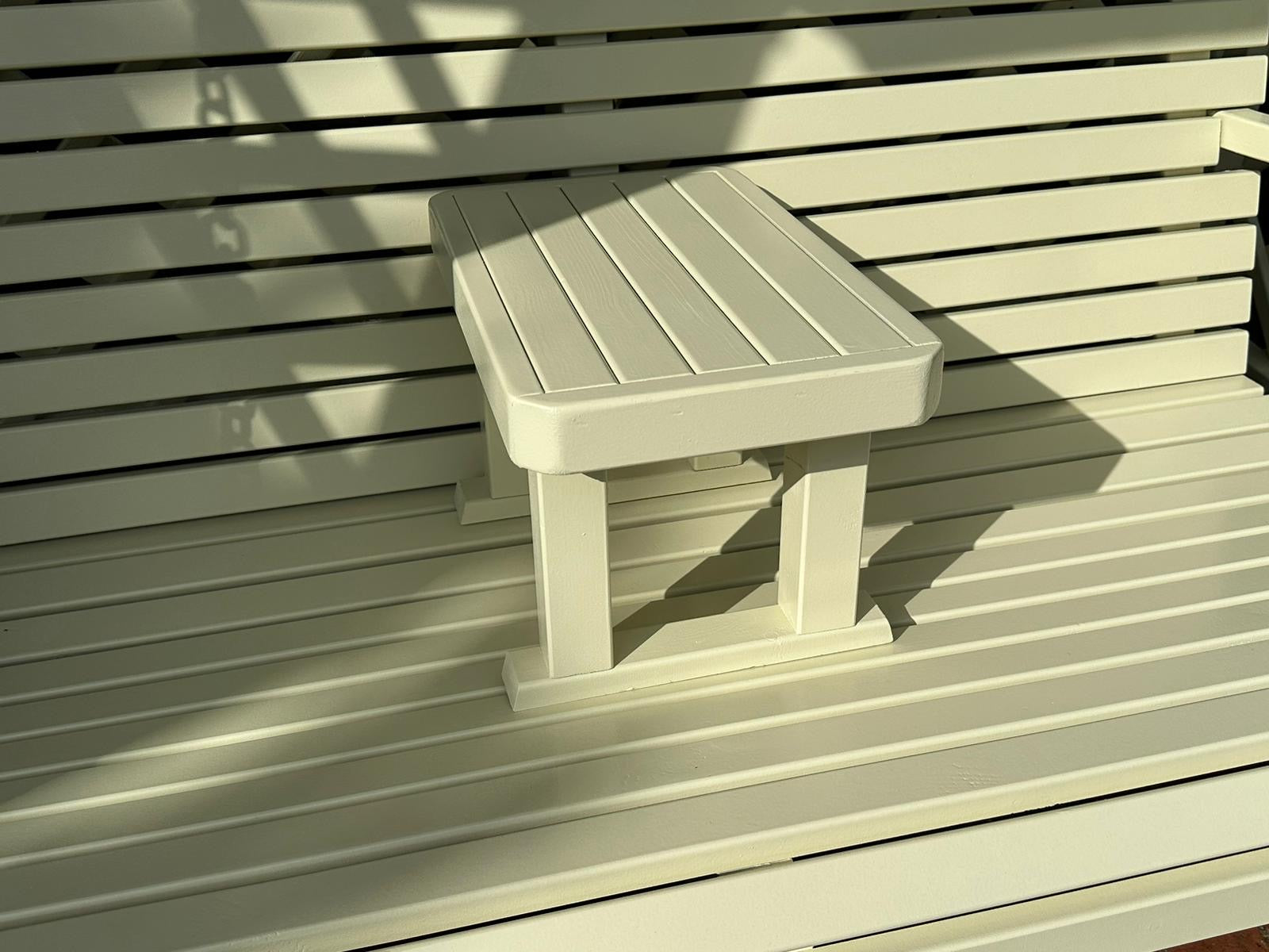 - A pair of curved frame footrests made from Red Cedar to match the roof.