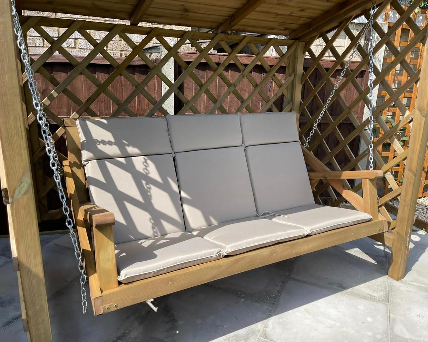 From the heavy duty galvanised chain to the luxurious feel of the planed timber this trellised swing chair offers value for money whilst still maintaining its premium product build quality.